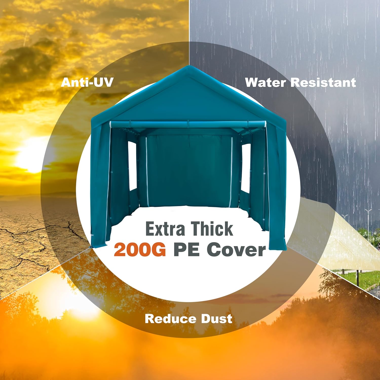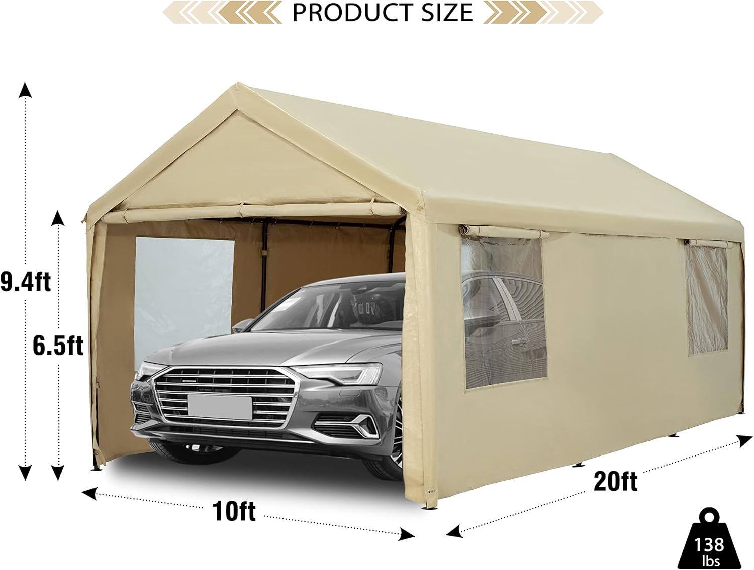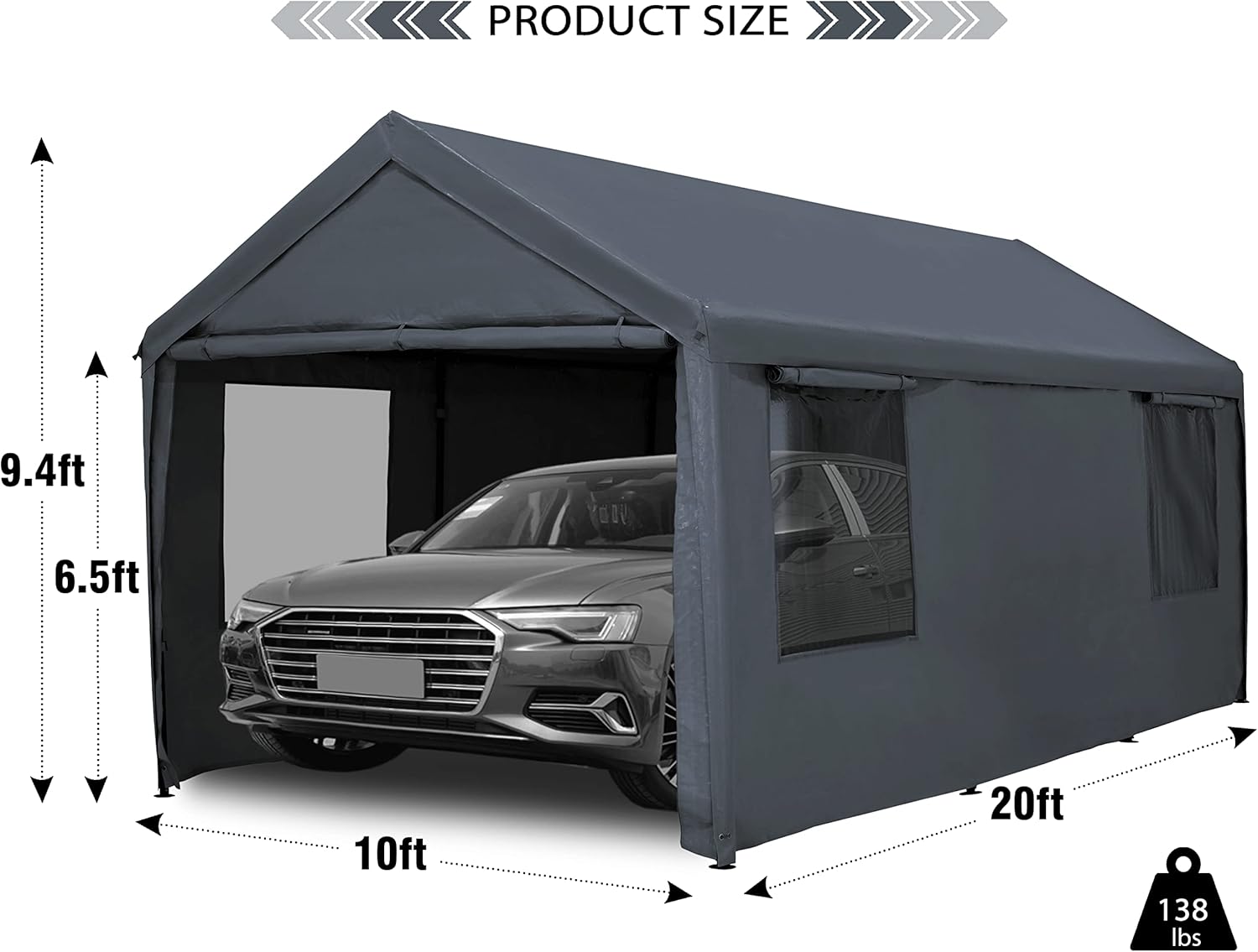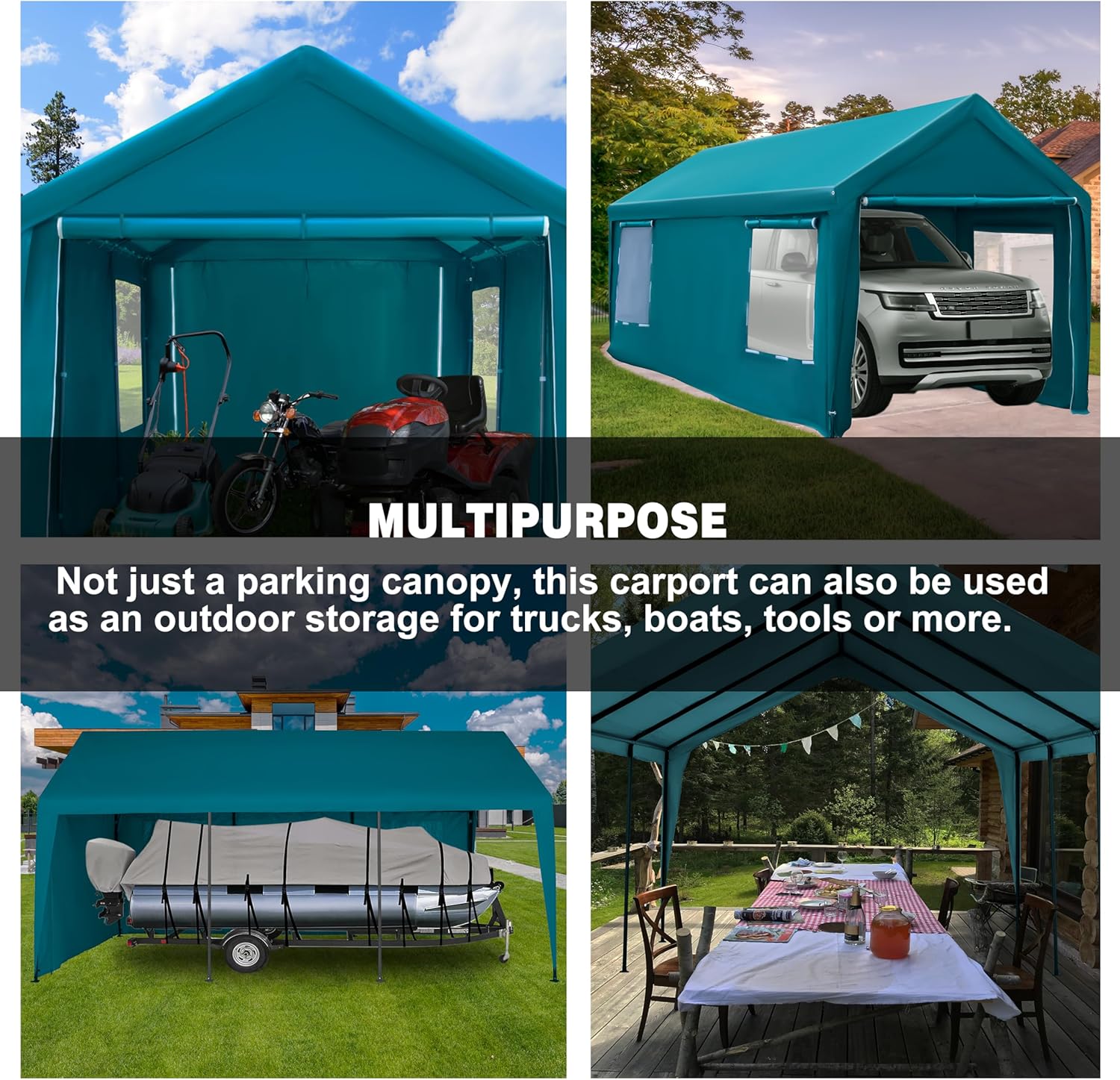 - [Multi-Usage]This Heavy Duty 10x20ft Carport Canopy with Removable Sidewalls & Doors can be used as Portable Garage for Boat, Party, Outdoor Camping tent, Outside storage tent and car shelter etc.