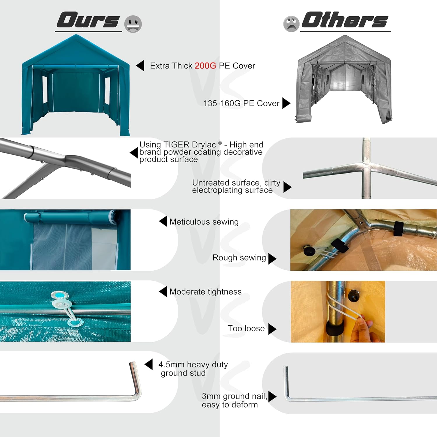 - [Exceptional Quality]Industrial Grade Heavy Duty Galvanized Frame with 8 legs offer more stablity , Thicker and more durable PE fabric provides a full range of protection throughout the year. Roof cover adopts modern heat-sealing technology, providing 100% waterproof protection. Wind resistance up to level 6 with sufficient counterweight.