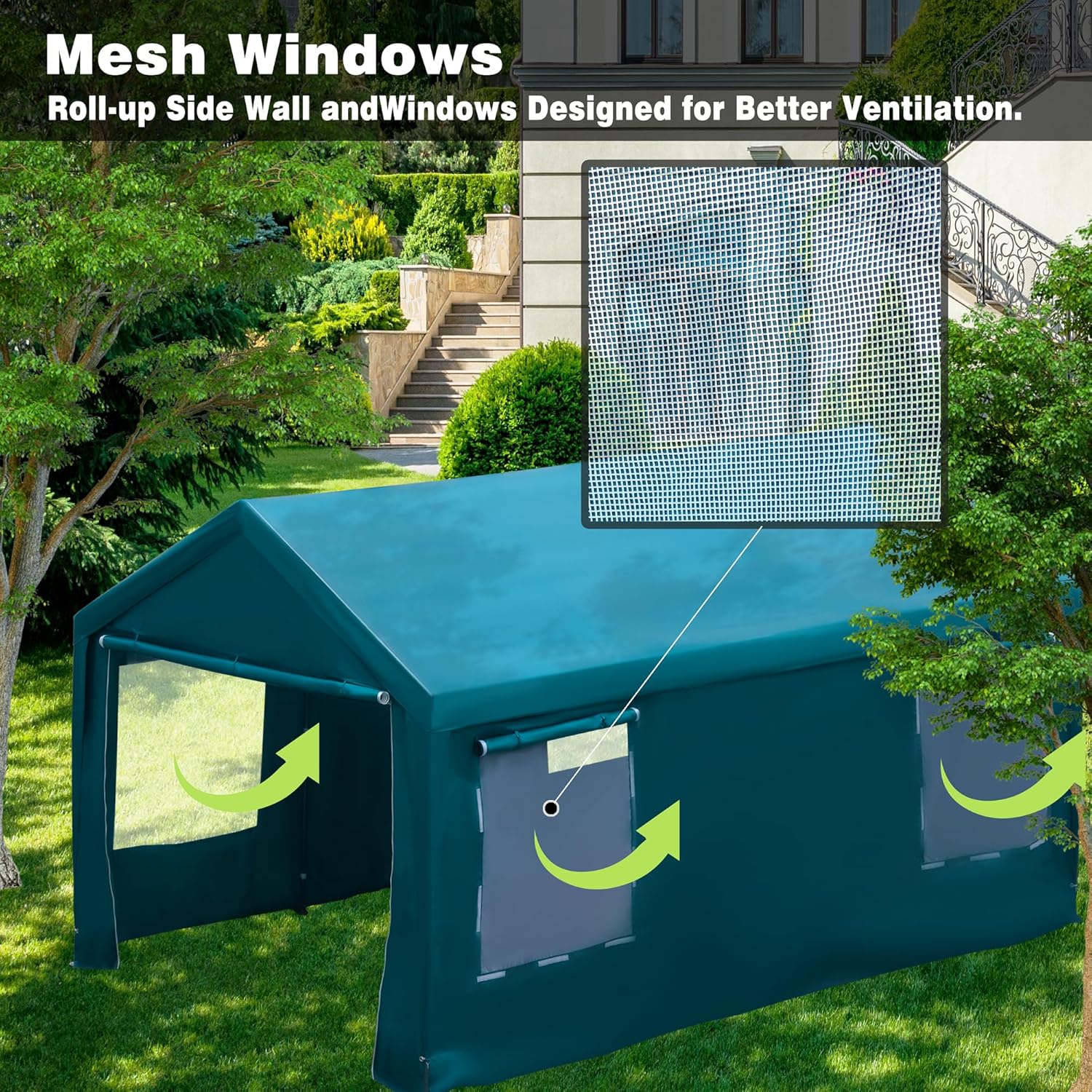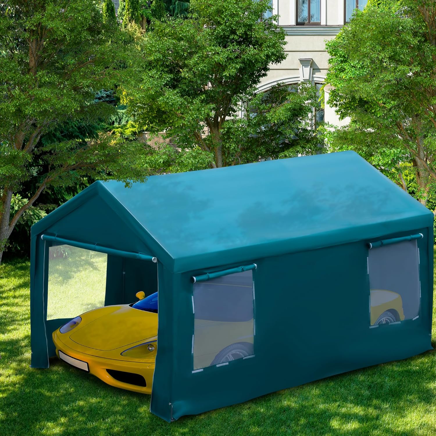 Carport Canopy 10x20 FT Heavy Duty Car Tent with Removable Sidewalls & Doors, Portable Car Port Garage Shelter for Boat, Party, Outdoor Camping Tent, UV Resistant (Blue Green, 10x20ft)